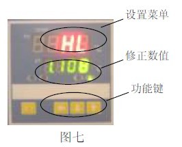 7.1.6 (見圖七)按“SET”鍵,PV屏出現“H L”,將“H L”修改為1.000,再回到工作狀態;